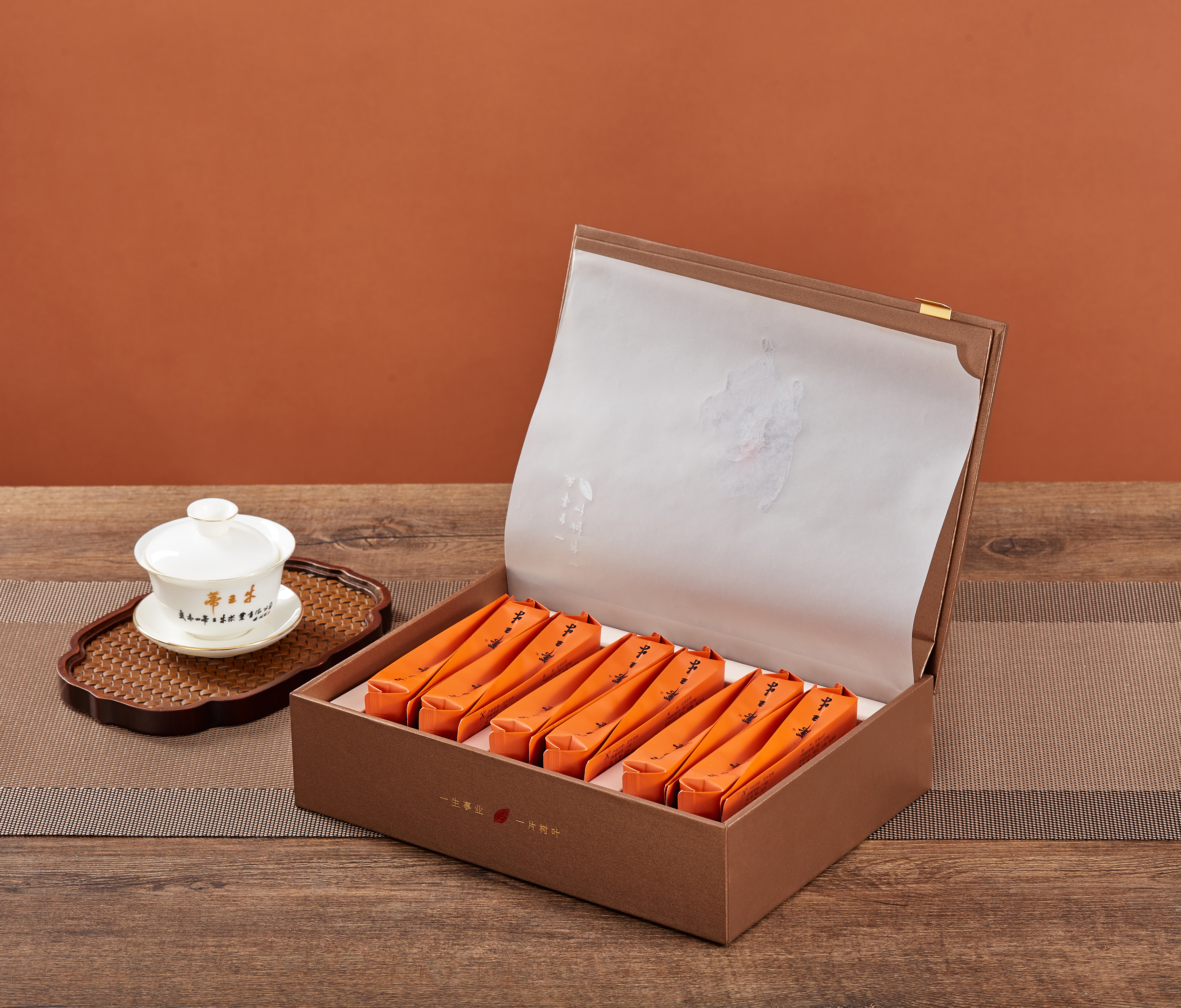 外形条索壮实,色泽乌润,呈褐绿色;粽叶香、兰花香,品后回甘生津,枞韵显;汤色橙黄透亮,百年风华,凝幽远木香;枞香自在,山气浩存,伴清冽鸣泉;香不飘而厚重,甜不透而挂杯悠长。蒂王牛百年老枞扎根于武夷山核心灵秀之壤,茶树不断汲取岩土深层的矿物精华和茶园植被的气息,使得根系发达壮硕,茶枝长满了附生苔藓。经年累月,茶树沉淀了独特的山场韵,使得蒂王牛百年老枞汤感醇甜枞味显,将自然禀赋与岁月质感表现得淋漓尽致。