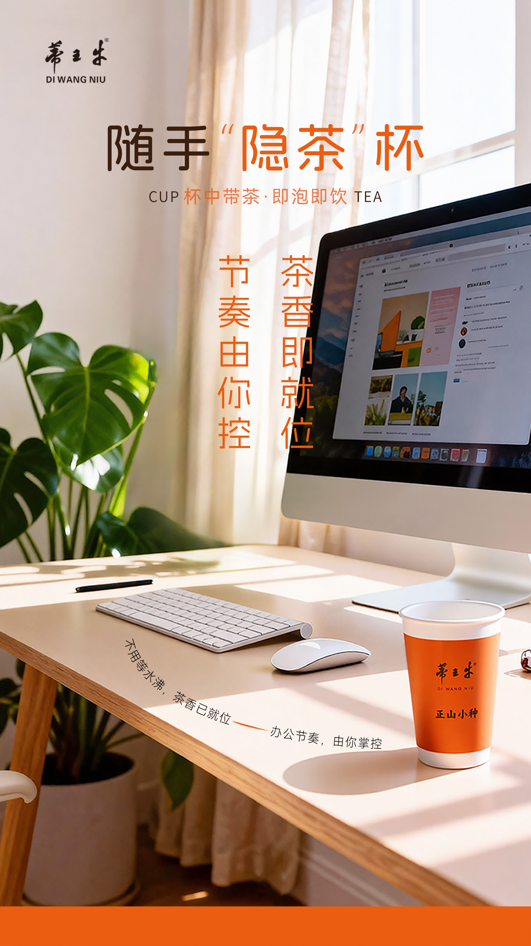 一杯蒂王牛随手“隐茶” 杯,杯中藏茶、即泡即饮;